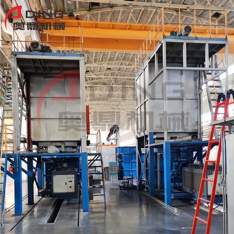 1、立式鋁合金淬火爐主要由爐殼、爐襯、加熱元件、循環(huán)風(fēng)機(jī)、導(dǎo)流罩板、料筐升降機(jī)構(gòu)、爐門及移動(dòng)壓緊機(jī)構(gòu)、移動(dòng)式淬火水槽、溫度、動(dòng)作控制系統(tǒng)等部分組成。